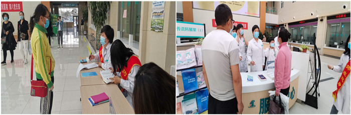 药学部集体以党支部的形式到基层发放药学科普知识宣传单,现场进行用药知识的宣教,为基层老百姓答疑解惑。此外,在药学部主任的带领下,志愿服务团队在门诊大厅开展以”合理用药,共享健康”为主题的药物咨询义诊活动,涉及抗肿瘤、心脑血管、营养、抗生素、疼痛等相关专业的用药咨询,消除患者的用药疑虑,提高用药依从性,得到广大患者及家属的认可。